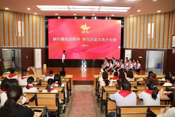 在主题队课中,尹柔云老师借助动画和实物展示,带领队员们感悟攀枝花精神,理解“共富共美”的时代内涵,着力培育队员们的家国情怀。这为在场其他辅导员提供了一堂可借鉴、可复制的童趣化思政教育范例。