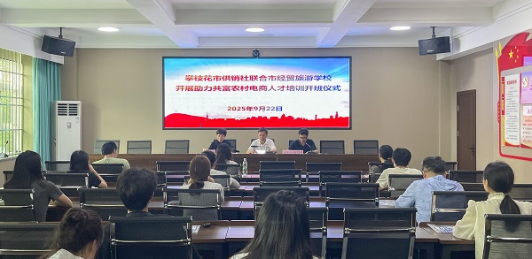 为贯彻落实高质量发展建设共同富裕试验区战略部署,助力消除城乡差距、促进农民富裕,2025年9月22日下午,由市供销社联合市经贸旅游学校共同开展的“助力共富农村电商人才培训”在市经贸旅游学校江南校区顺利开班。本次开班仪式由市经贸旅游学校副校长高国峰主持,市供销社理事会主任张林,市经贸旅游学校校长傅梅,全体培训学员参加。