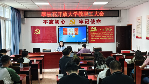 10月24日,攀枝花开放大学召开教职工大会,集中学习习近平总书记重要讲话精神、习近平总书记重要文章和《中华人民共和国法治宣传教育法》,通报典型案例,审议新修订的《攀枝花开放大学章程》等制度。会议由学校党委副书记、纪委书记邬婷主持,校领导班子全体成员、全校教职工参加。