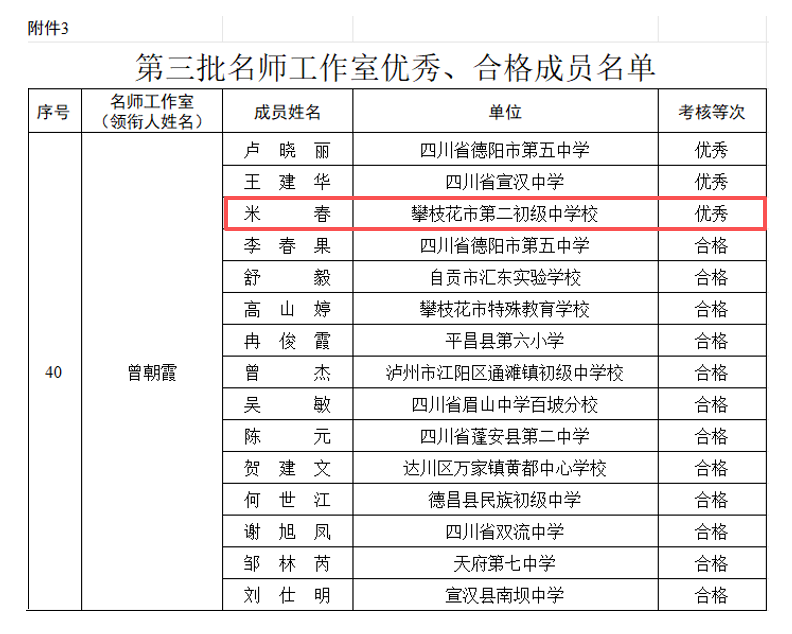 在四川省教师发展中心组织开展的第一二期卓越校长工作室及第三批名师工作室考核中,米春老师凭借出色的专业素养和积极的研修表现,被评为“优秀成员”。这一荣誉不仅是对米春老师个人能力的充分肯定,也体现了市二中在教师梯队建设与专业发展路径上的显著成效。