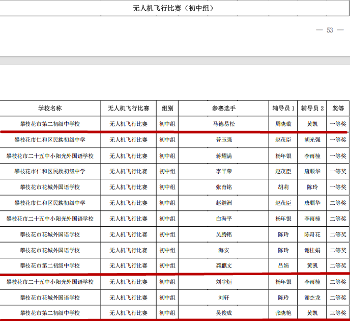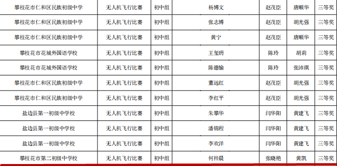 攀枝花市第二初级中学校在攀枝花市第十六届青少年机器人竞赛活动中斩获佳绩