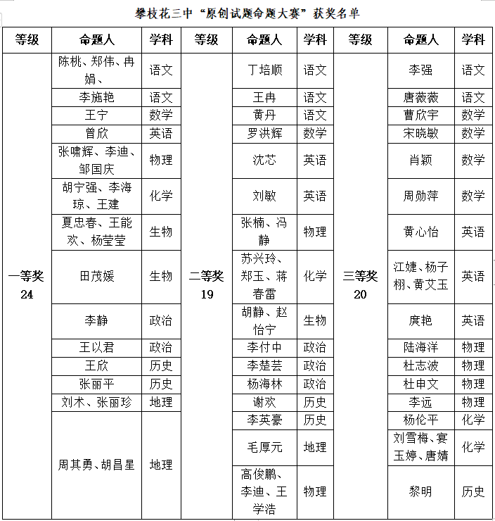 市三中“原创试题命题大赛”圆满落幕