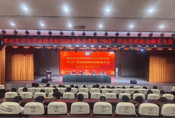 3 月 6 日,攀枝花市经贸旅游学校江南校区和江北校区分别召开了2026 年春季学期“9+3”学生思想政治教育大会,为全体“9+3”学生明确新学期成长要求、划定发展方向,会议紧扣立德树人根本任务,融入民族团结教育核心内容,全体“9+3”学生及全体德育管理干部参会。