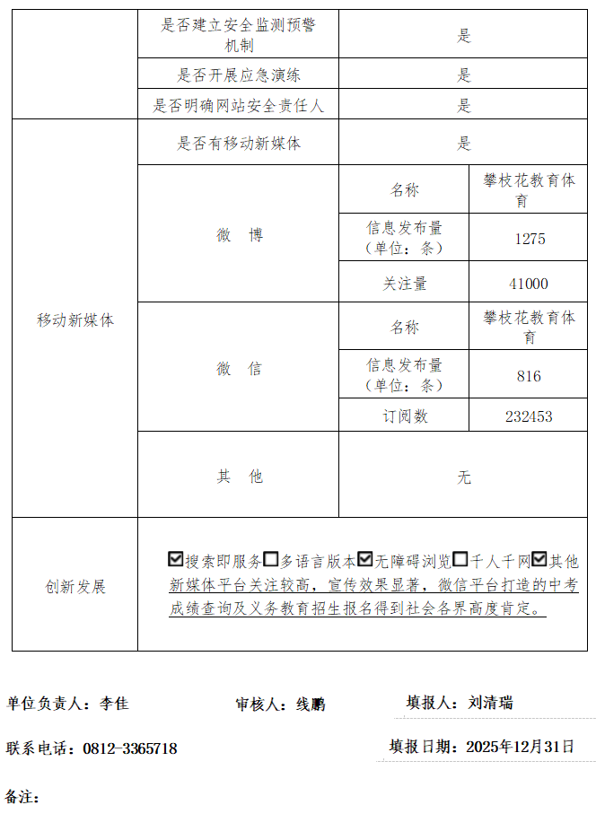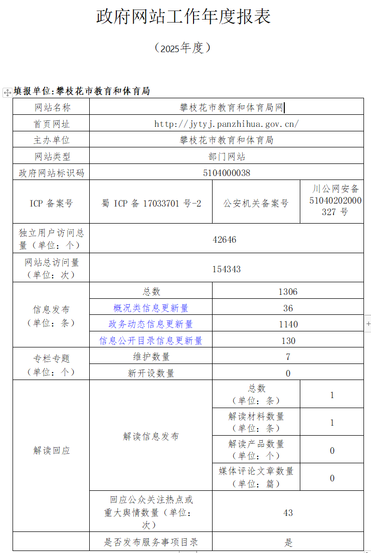攀枝花市教育和体育局网站工作年度报表(2025年度)